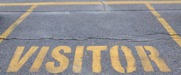 An empty parking space labeled for visitor parking
